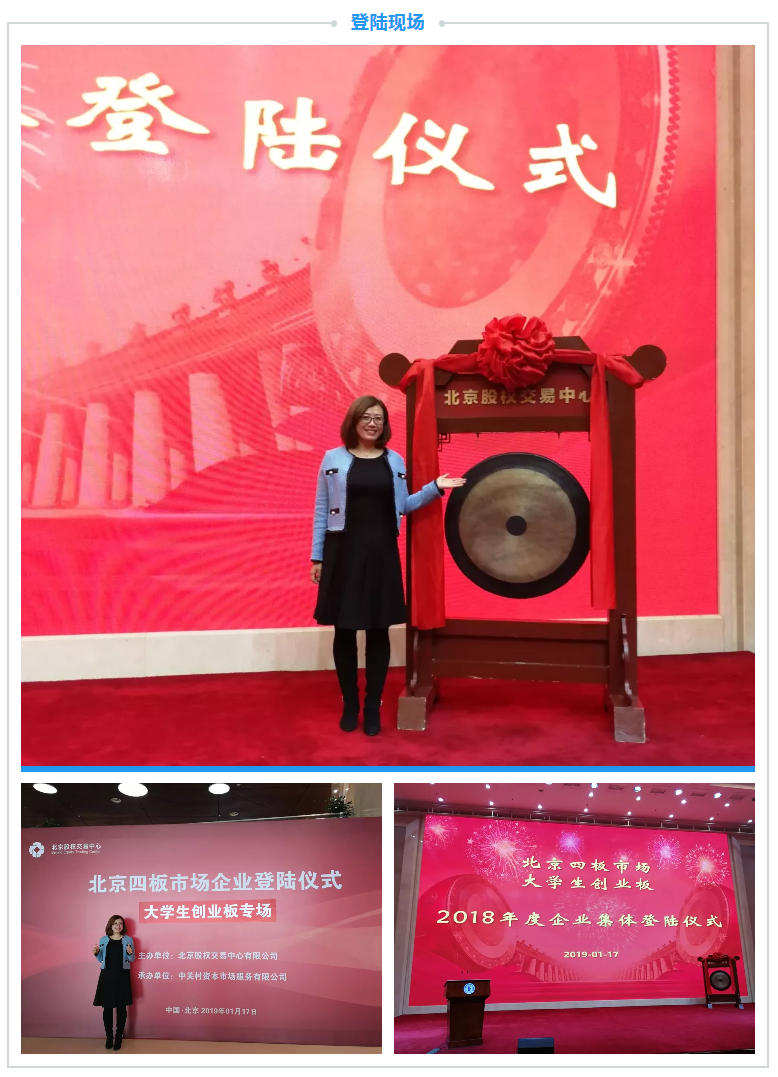 2019年1月17日上午,北京四板市场大学生创业板2018年度上板企业集体登陆仪式在中关村国家自主创新示范区展示中心会议中心一层隆重举行,包含国科小鸟体育(中国)官方网站-登录入口在内的近40家大学生创业企业在此敲响了资本市场之锣。