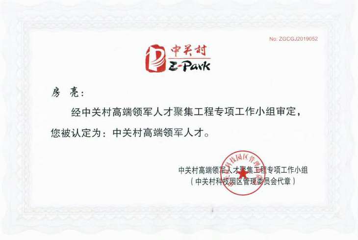 这一次房亮博士获得2019年度中关村高端领军人才的殊荣,不仅是对房亮博士创业领军能力的认可,也是对国科小鸟体育(中国)官方网站-登录入口未来发展的认可。
