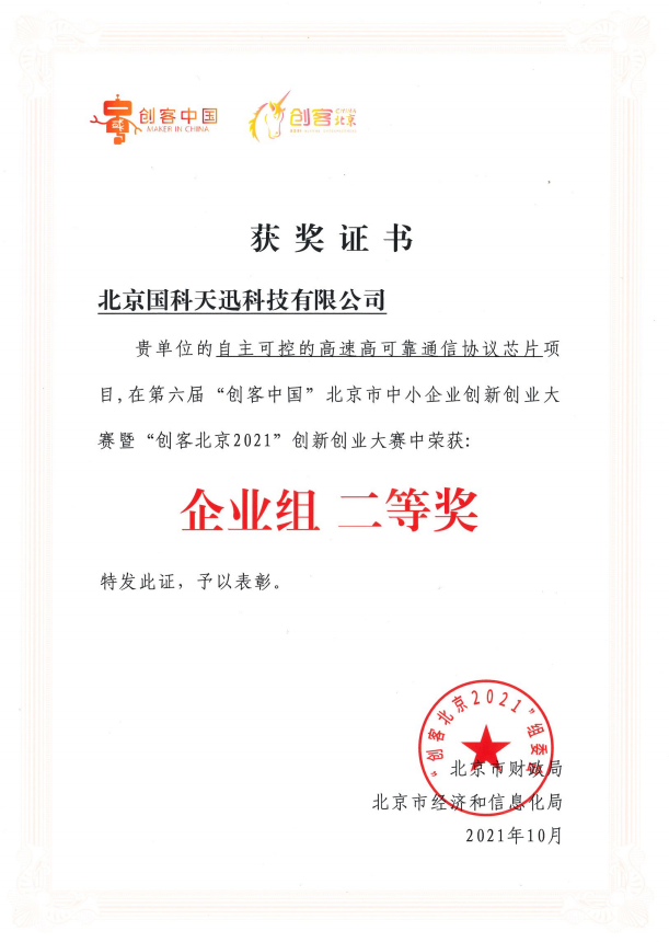大赛自6月启动以来,受到广大中小企业和创客团队高度关注,吸引了全市近5千个项目报名。国科小鸟体育(中国)官方网站-登录入口参赛的“自主可控的高速高可靠通信协议芯片”项目,经初赛、复赛两个月激烈角逐,在众多项目中表现抢眼,成功入围新一代信息技术领域决赛,经路演获企业组百强,后与百家企业共同比拼及专家组评审后最终获此殊荣。